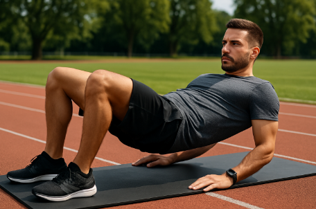 - 횟수: 15회 × 3세트 - 효과: 햄스트링, 대둔근 자극 → 착지 안정성 향상 - 팁: 발바닥 전체로 바닥을 밀어올리며, 엉덩이를 끝까지 수축시키는 것이 중요